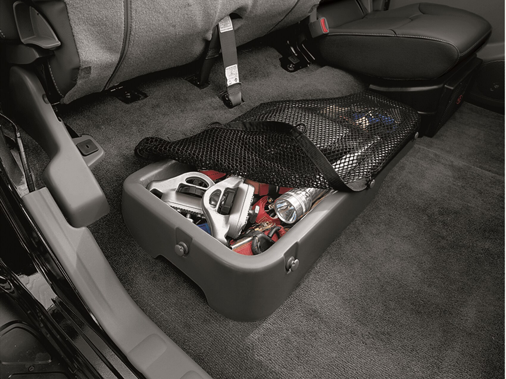 The cargo bed also comes with a locking tailgate and cargo bed light. So, if you end up working overtime into the evening, you'll still have plenty of visibility while loading up your gear.
