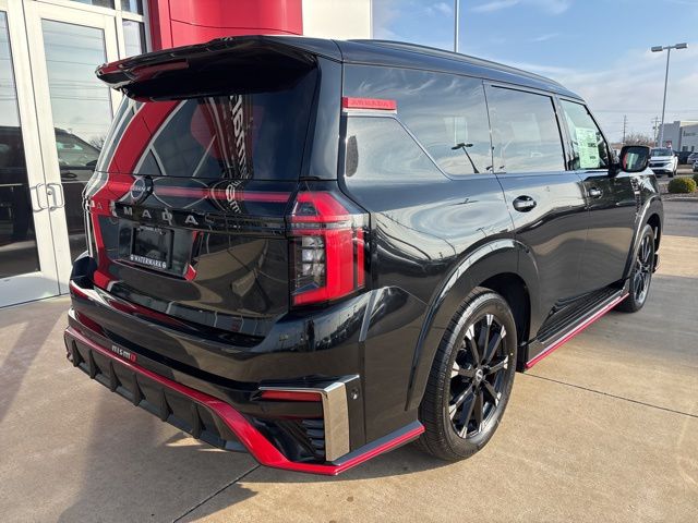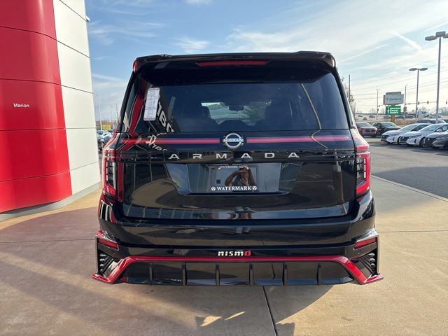 4WD, 3rd row seats: split-bench, 8-way Power driver seat, Anti-whiplash front head restraints, Apple CarPlay/Android Auto, Brake assist, Emergency communication system: NissanConnect Services, Front dual zone A/C, Garage door transmitter: HomeLink, Genuine wood dashboard insert, Heated door mirrors, Heated Front Bucket Seats, Heated front seats, Heated steering wheel, HVAC memory, Intelligent Auto Headlight, Memory seat, Navigation system: Google Maps, NISMO Carpeted Floor Mats, Nismo Suede Seat Trim, Power Liftgate, Power passenger seat, Power sliding moonroof w/ tilt, Power steering, Power windows, Radio: NissanConnect with SiriusXM 360L, Reclining 3rd row seat. 2026 Nissan Armada NISMO